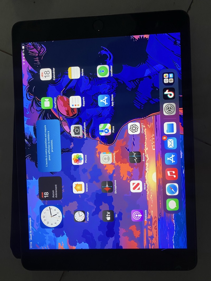iPad 8 occasion presque neuf utilisation de 9 mois .