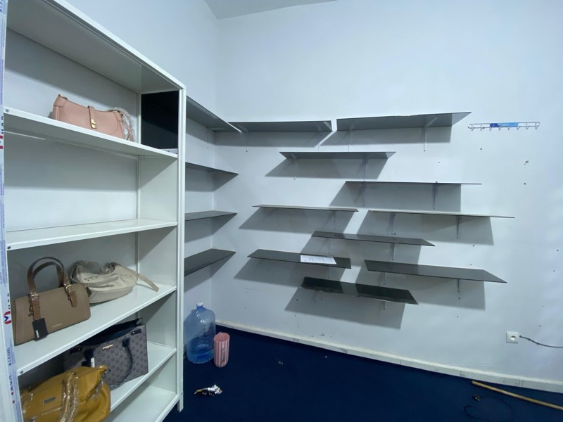 De très belles étagères en vitre avec armoire au milieu à vendredi. Très pratique pour ranger vos produits dans votre magasin. .