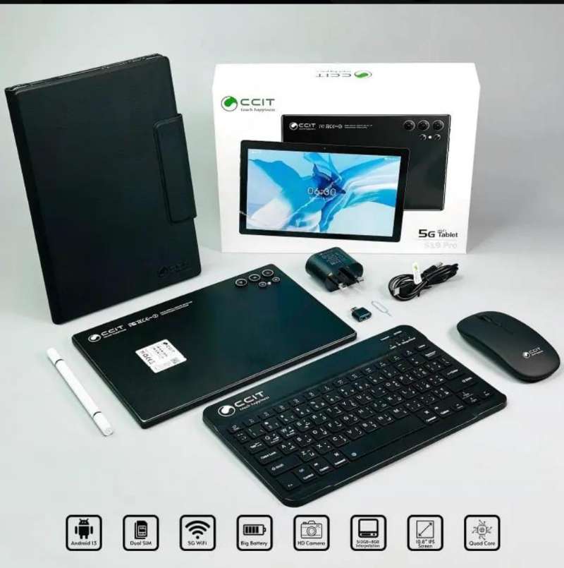 Tab 19 Pro بشاشة 10.8 بوصة يعمل بنظام أندرويد 13، ذاكرة وصول عشوائي 8 جيجابايت + ذاكرة تخزين 512 جيجابايت، دعم شبكة 56 وواي فاي شريحتين، بطارية 10000 مللي أمبير، مع لوحة مفاتيح، فأرة وغطاء .