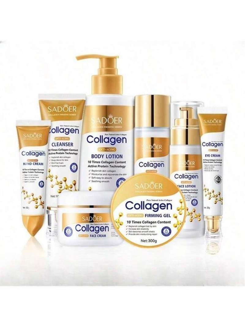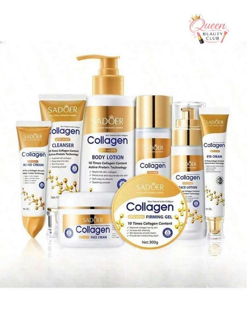 Coffret Soin Complet au Collagène SADOER ✨ Mesdames, offrez à votre peau un soin anti-âge complet pour une beauté éclatante 💆♀️💖 💛 Formule enrichie en collagène pour : ✨ Raffermir la peau ✨ Réduire les signes de l’âge ✨ Hydrater en profondeur ✨ Donner un teint lisse et lumineux 🎁 Le coffret contient : ✨ Gel nettoyant ✨ Lotion visage ✨ Sérum ✨ Crème visage ✨ Crème contour des yeux ✨ Lotion corps ✨ Gel raffermissant ✨ Crème mains 💆♀️ Idéal pour une routine beauté complète (visage + corps) 📦 Coffret disponible maintenant 📲 Commande en message privé 👑 Avec QUEEN BEAUTY CLUB, révélez une peau jeune, douce et éclatante. .